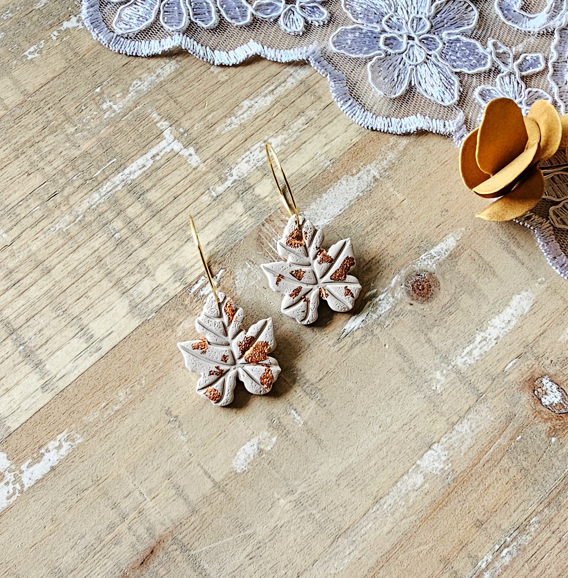 Each pair of our autumn leaf earrings are based on nature in the autumn seasons. Each pair is hand-sculpted from premium clay and designed to pair with any outfit.