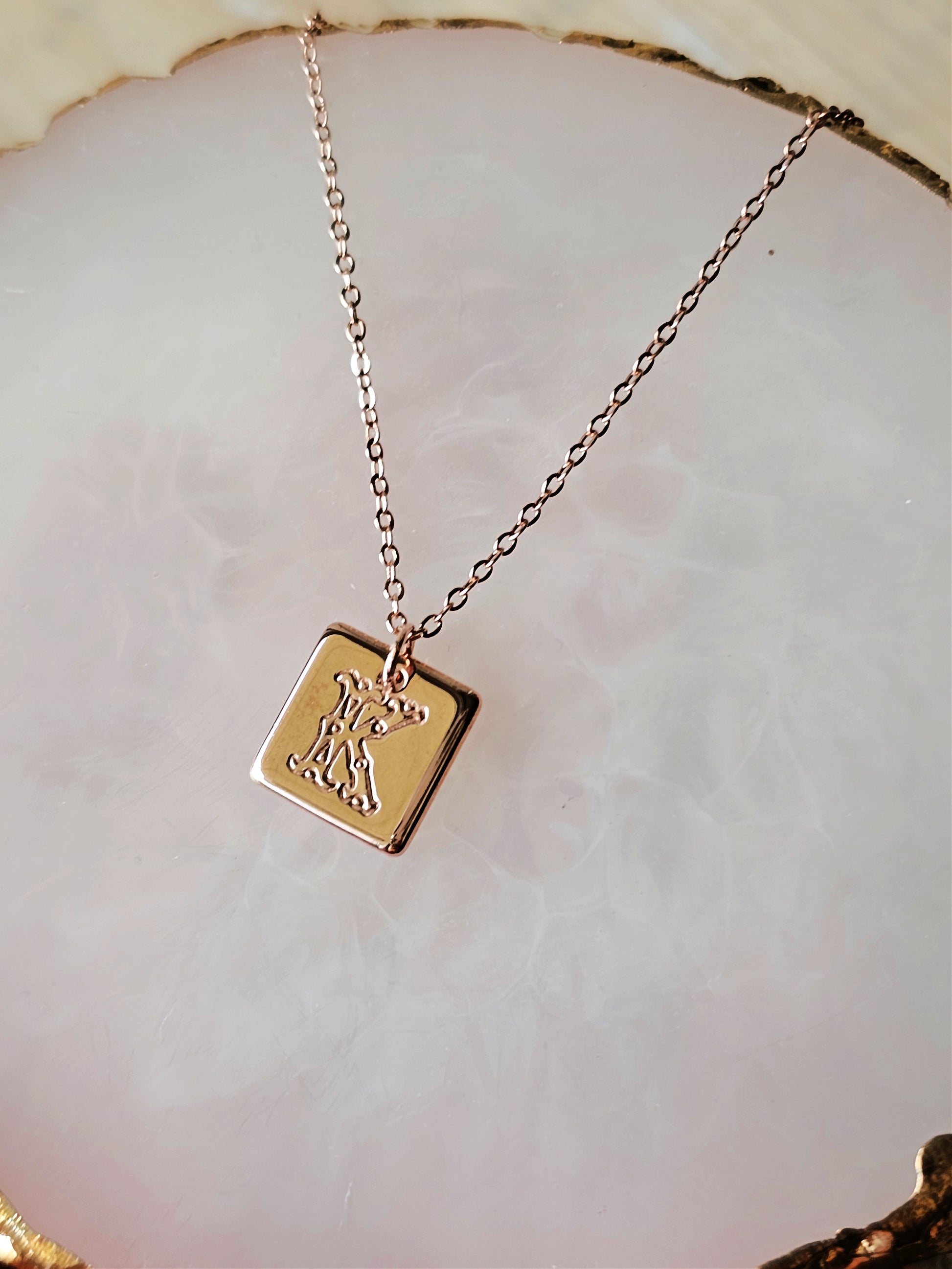 Dainty Rose Gold Squared Necklace | Rose Gold Stamped Initial Necklace | Personalized Necklace